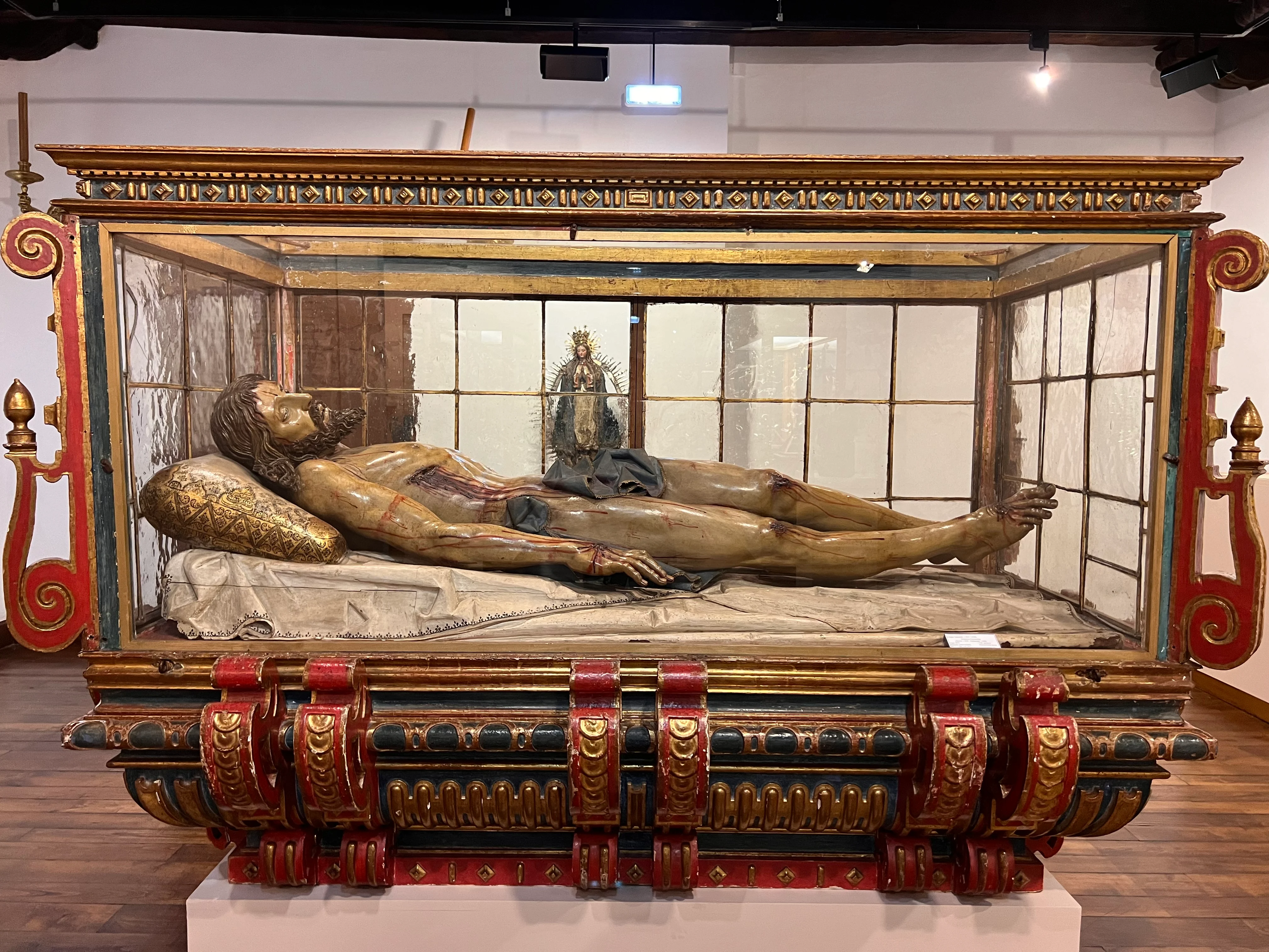 Esta imaxe escultórica representa a Cristo en posición xacente, inmediatamente despois da Crucifixión. Realizada en madeira policromada, a obra destaca polo seu realismo e detallismo, froito dun coidado estudo anatómico e dunha técnica escultórica refinada. O corpo, tallado como peza exenta, está pensado para ser contemplado desde todos os ángulos, o que permite apreciar a complexidade e expresividade da figura.