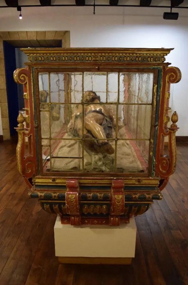 A obra repousa sobre unha almofada e un colchón, tamén tallados en madeira policromada, que acadan un notable efecto táctil e de suavidade. O conxunto complétase cunha furna procesional de madeira e cristal, na que se custodia a escultura na actualidade.